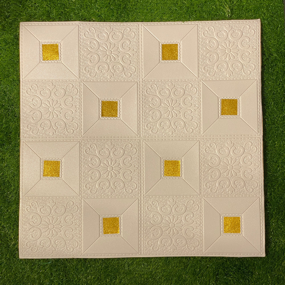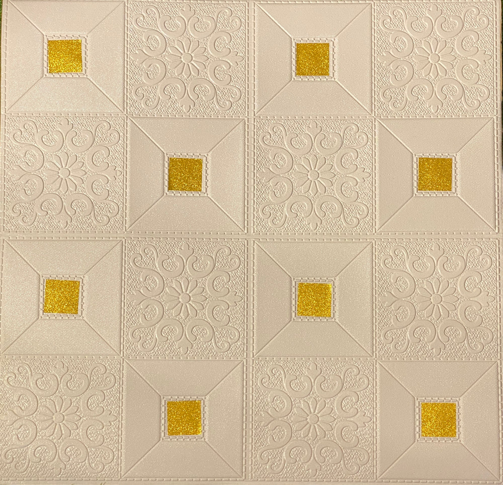 3D Wall Sticker PVC Foam Royal Pattern Self-Adhesive Wallpaper PE Foam, Washable Wall Paper Sheets for Living Room Wall for Bedroom, Office, Kitchen (70 CM x 70 CM)(White Golden)(Set of 5)(FS-28)
