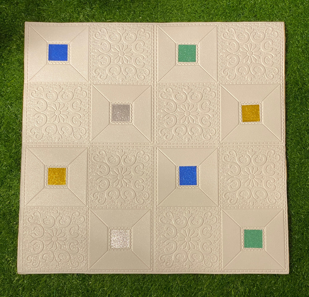 3D Wall Sticker PVC Foam Royal Pattern Self-Adhesive Wallpaper PE Foam, Washable Wall Paper Sheets for Living Room Wall for Bedroom, Office, Kitchen (70 CM x 70 CM)(White-Multicolor)(Set of 5)(FS-30)