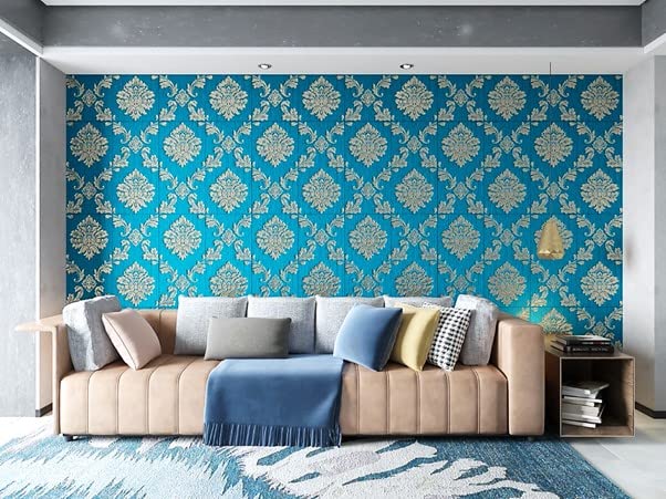 Blue Damask Wallpaper for Walls 3D Design I Foam Wall Paper Sticker Panels I Textured & Waterproof 3D Wall Tiles (70 CM x 70 CM)(Set of 5)(FS-14)