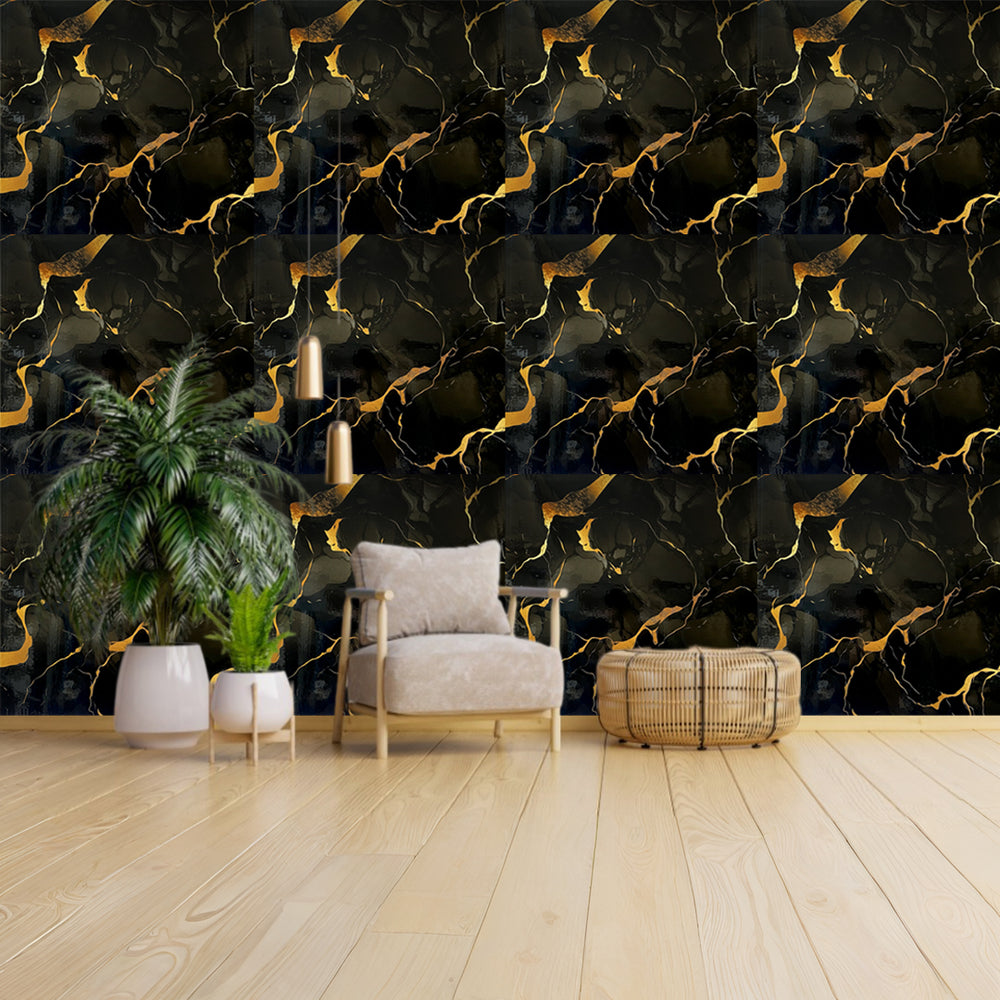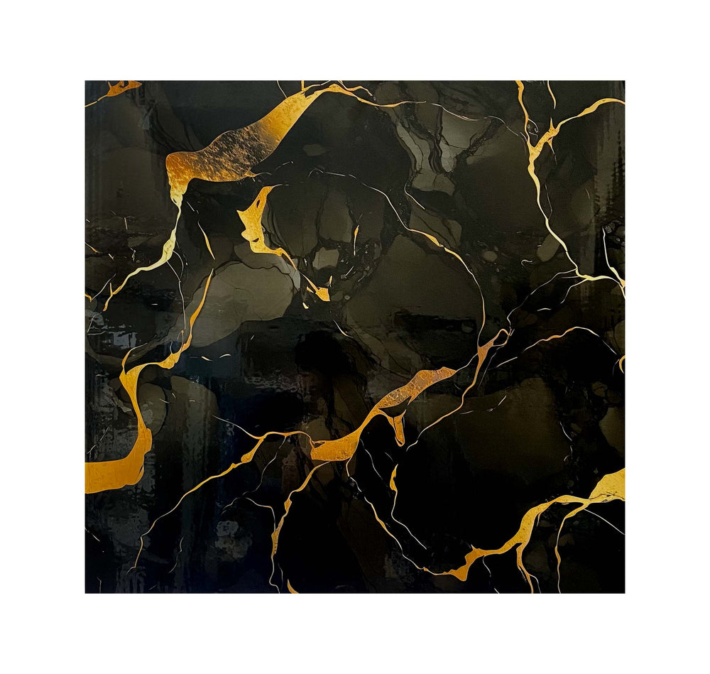 Black marble texture with Gold veining shaded UV Coated Real Marble Tile Designed wall Stickers, Self Adhesive And Washable Wall Stickers For Wall Decoration (60 CM x 60 CM) ( Set Of 05 )(MS-64)