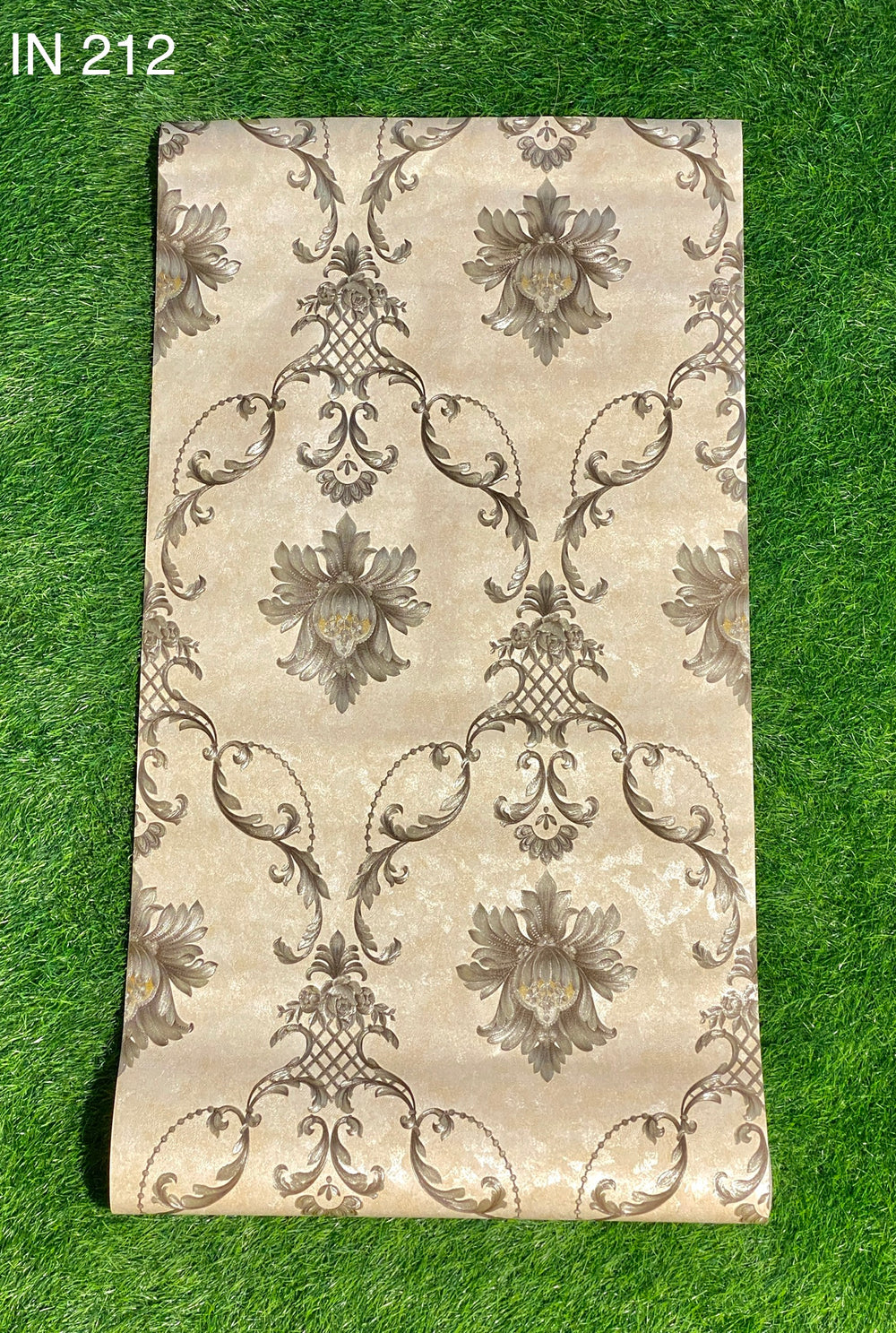 Golden And Brown Floral Pattern Not Self Adhesive 53 Cm X 1000 Cm for PVC Vinyl Coated for Wall Bedroom Living Room Latest Stylish for Home Decoration ( 57 Sqft Roll) (IN-212)