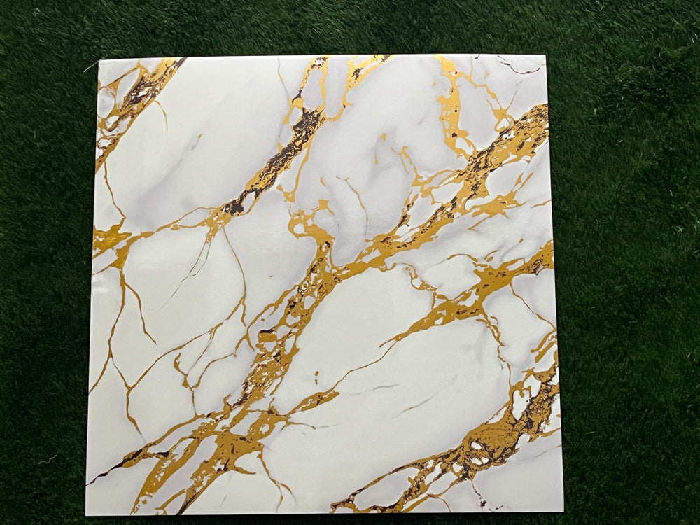 white And Golden design UV Coated Real Marble Tile Designed wall Stickers, Self Adhesive And Washable Wall Stickers For Wall Decoration (60 CM x 60 CM) ( Set Of 05 )(MS-55)