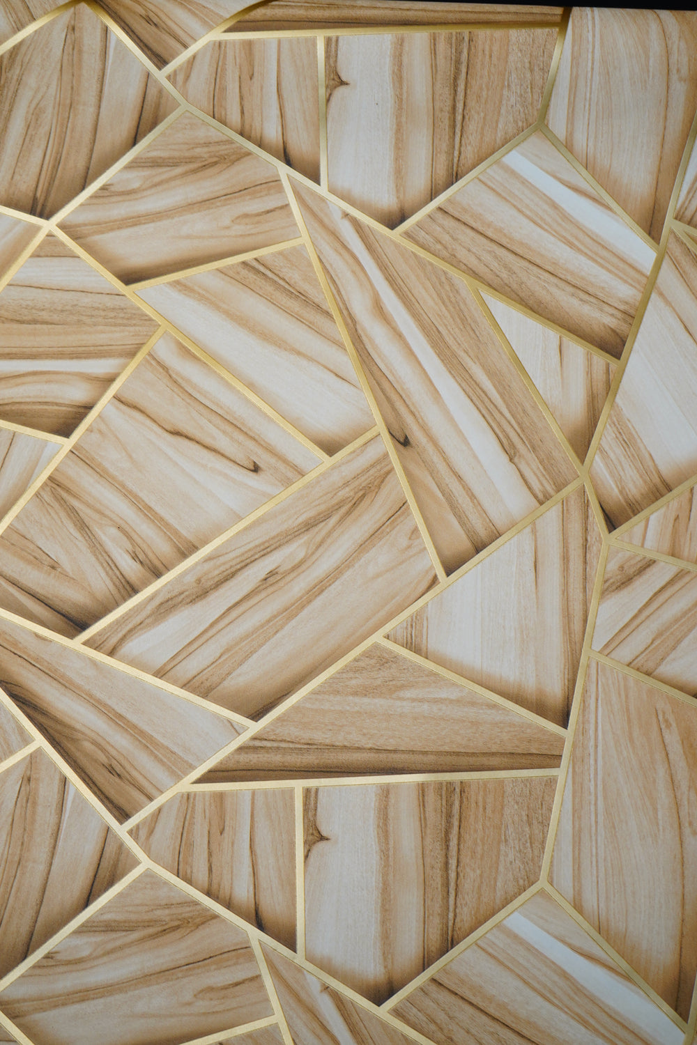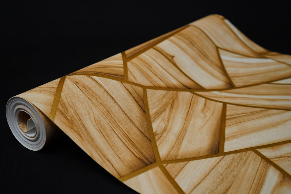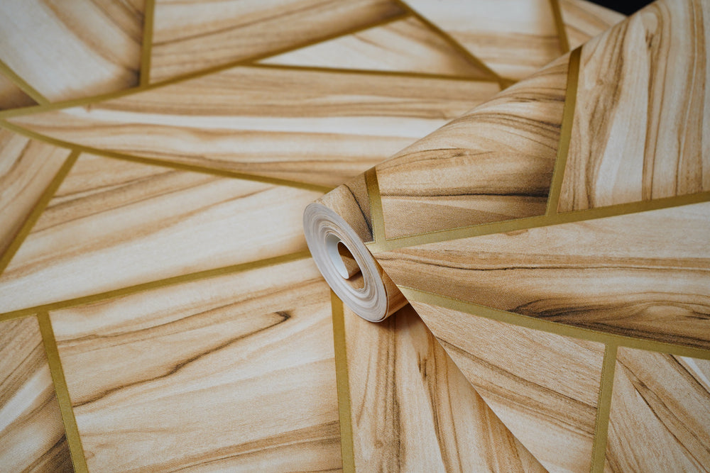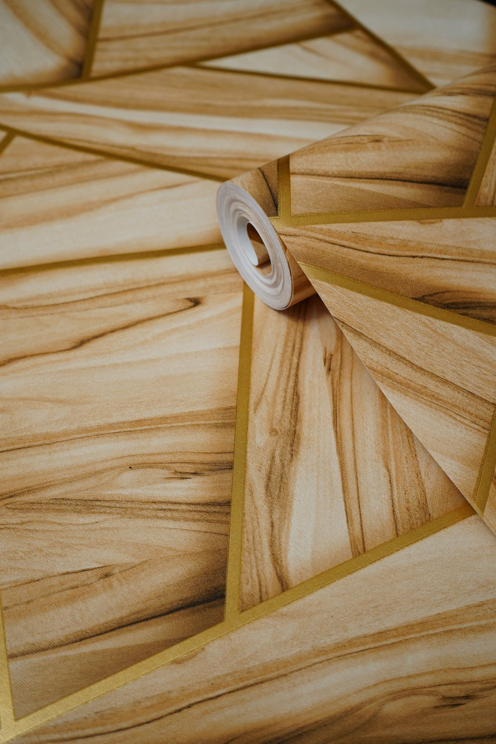 Light Wooden Abstract Design with Golden pattern Wallpapers 3D  Design Not Self Adhesive 53 Cm X 1000 Cm for PVC Vinyl Coated for Wall Bedroom Living Room Latest Stylish for Home Decoration (Light Brown & Golden  , 57 Sqft Roll) (NW-04)