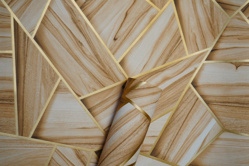 Light Wooden Abstract Design with Golden pattern Wallpapers 3D Design Not Self Adhesive 53 Cm X 1000 Cm for PVC Vinyl Coated for Wall Bedroom Living Room Latest Stylish for Home Decoration (Light Brown & Golden , 57 Sqft Roll) (NW-04)