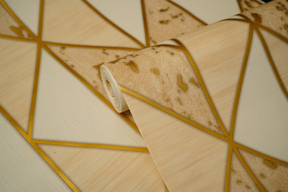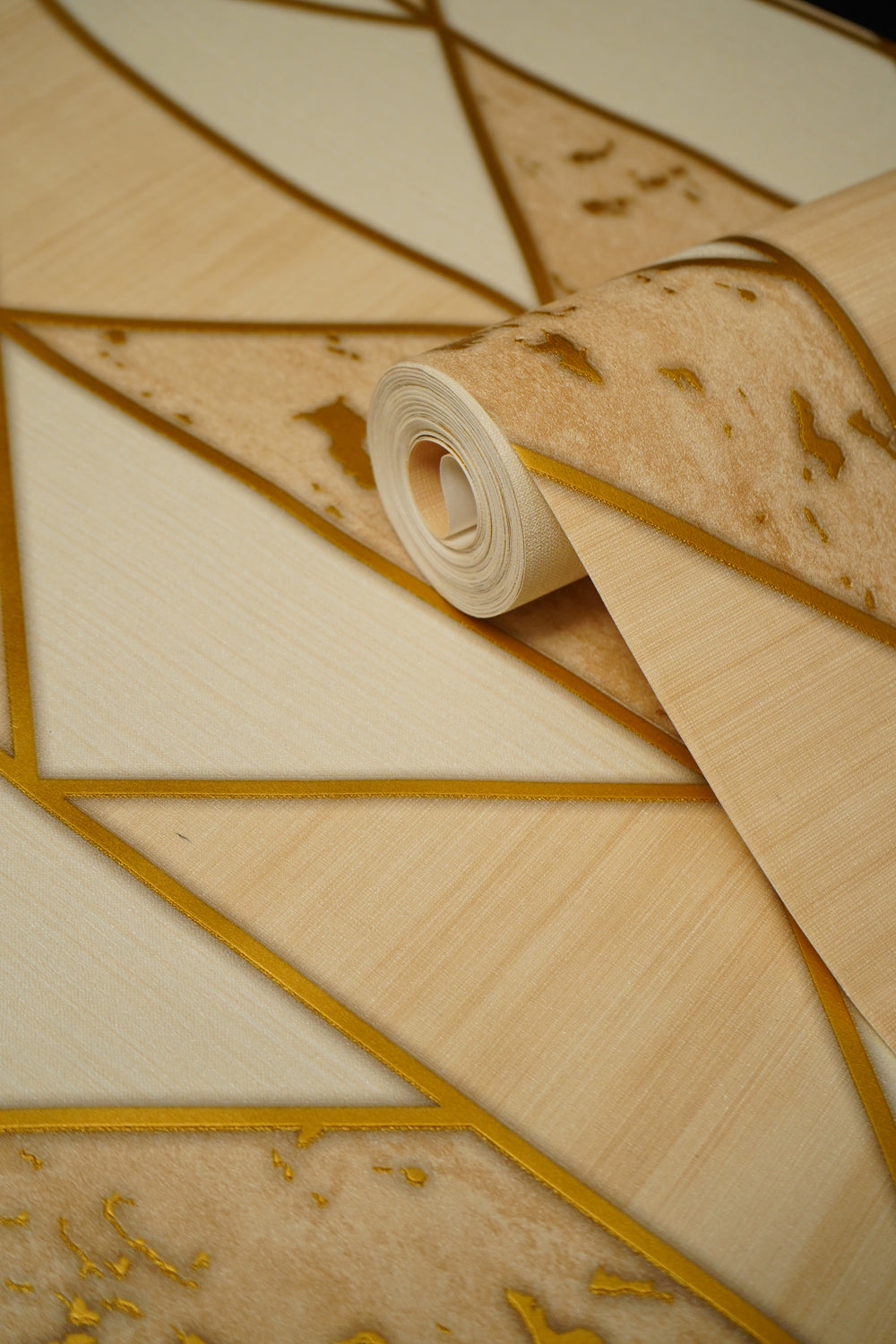 Light Brown Abstract  Design with Golden pattern Wallpapers  Design Not Self Adhesive 53 Cm X 1000 Cm for PVC Vinyl Coated for  Wall Bedroom Living Room Latest Stylish for Home Decoration (Light Brown & Golden  , 57 Sqft Roll) (NW-05)