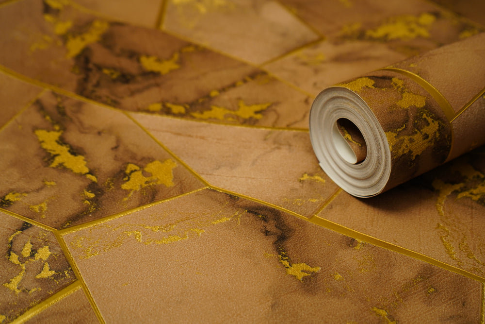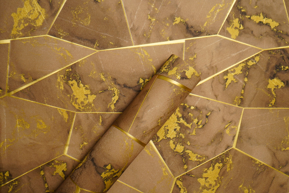 Dark Brown with Golden Lines on it Abstract Design Not Self Adhesive 53 Cm X 1000 Cm for PVC Vinyl Coated for Wall Bedroom Living Room Latest Stylish for Home Decoration (Brown & Golden , 57 Sqft Roll) (NW-28)