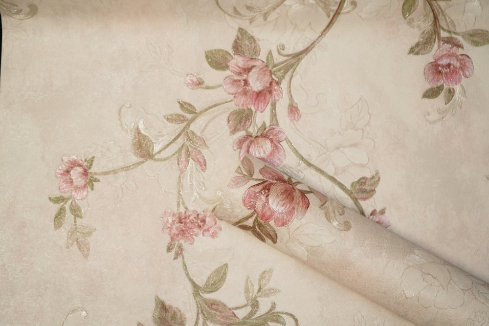 Cream With Light Pink Wallpaper  Design Not Self Adhesive 53 Cm X 1000 Cm for PVC Vinyl Coated for  Wall Bedroom Living Room Latest Stylish for Home Decoration (Cream & Light Pink, 57 Sqft Roll) (NW-37)
