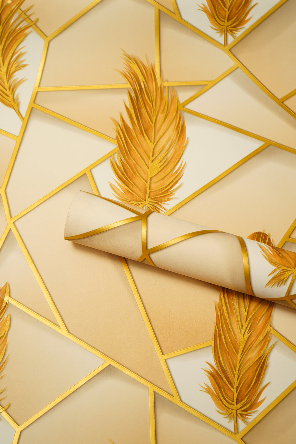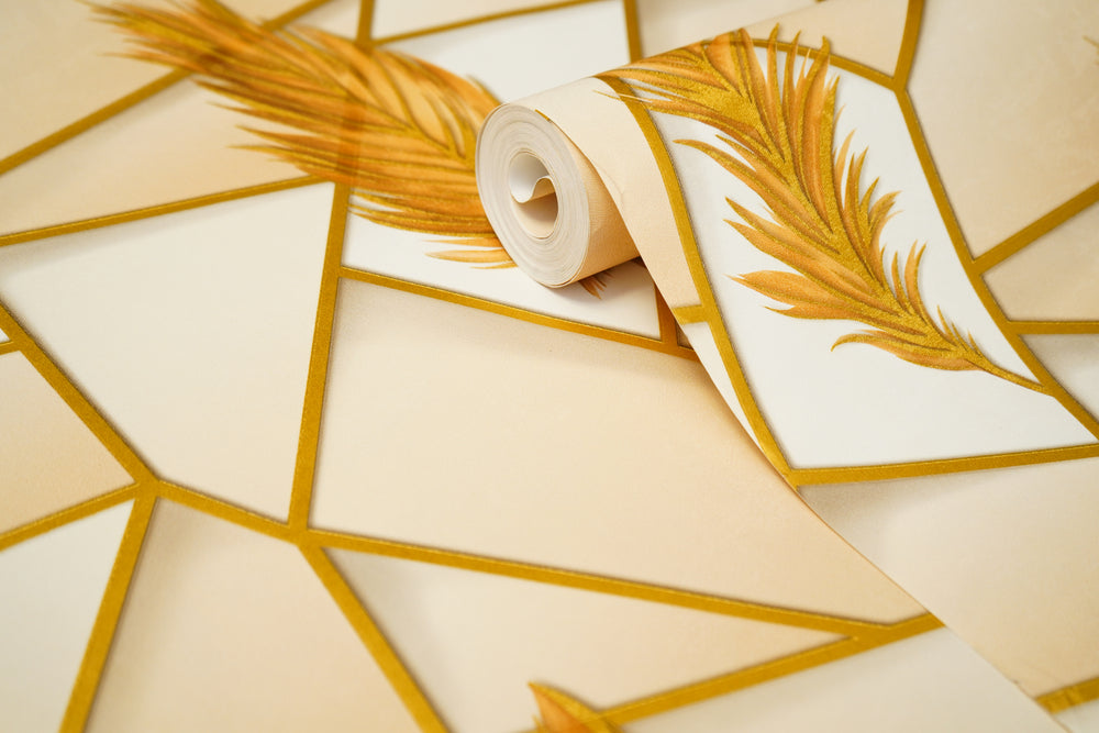 Golden Feather with Abstract  Design Not Self Adhesive 53 Cm X 1000 Cm for PVC Vinyl Coated for  Wall Bedroom Living Room Latest Stylish for Home Decoration (Golden , 57 Sqft Roll) (NW-39)