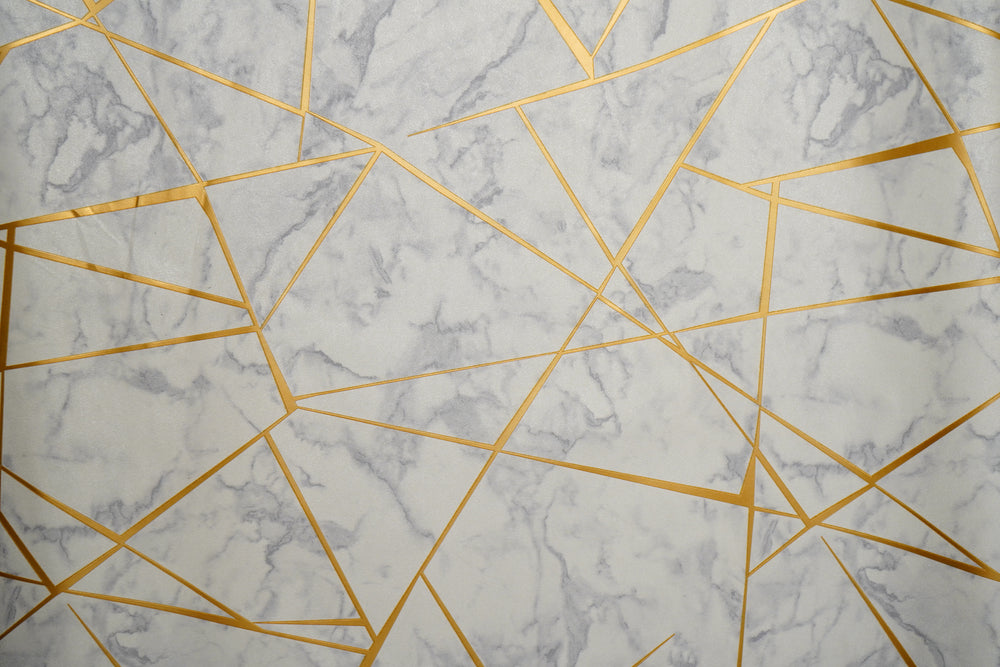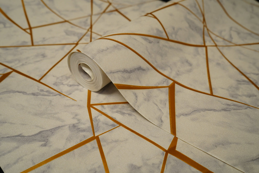 White Abstract Design with Golden Stripes Design Not Self Adhesive 53 Cm X 1000 Cm for PVC Vinyl Coated for Wall Bedroom Living Room Latest Stylish for Home Decoration (White & Golden , 57 Sqft Roll) (NW-40)