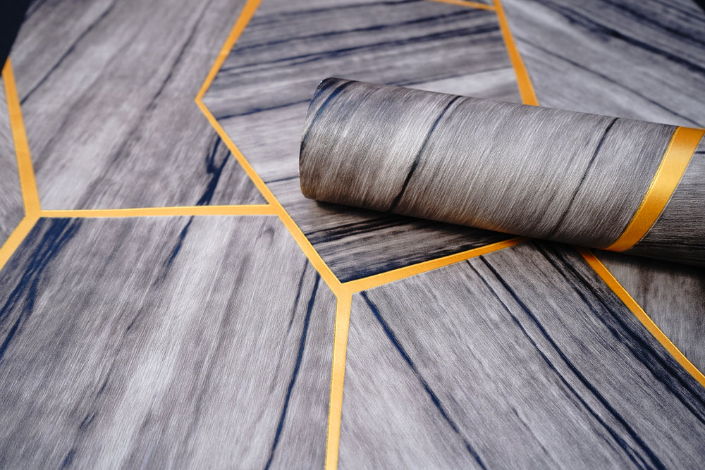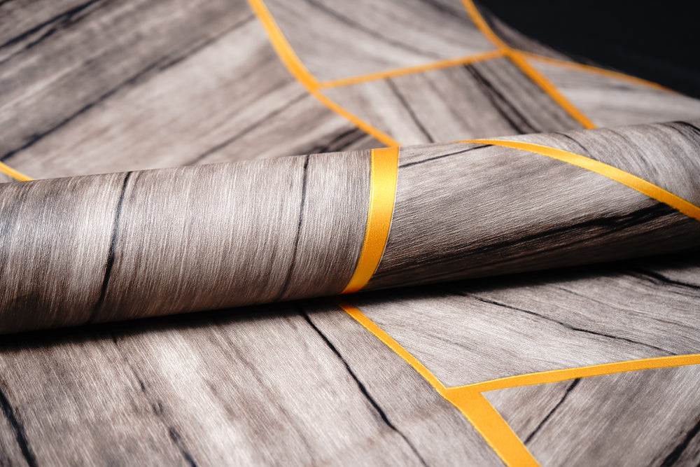 Dark Grey Wooden Design with Golden Stripes Not Self Adhesive 53 Cm X 1000 Cm for PVC Vinyl Coated for Wall Bedroom Living Room Latest Stylish for Home Decoration (Dark Grey , Golden , 57 Sqft Roll) (NW-41)