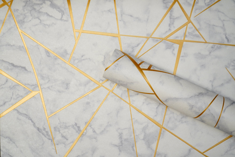 Off White Marble Design with Golden Stripes Not Self Adhesive 53 Cm X 1000 Cm for PVC Vinyl Coated for Wall Bedroom Living Room Latest Stylish for Home Decoration (Off White , Golden , 57 Sqft Roll) (NW-42)