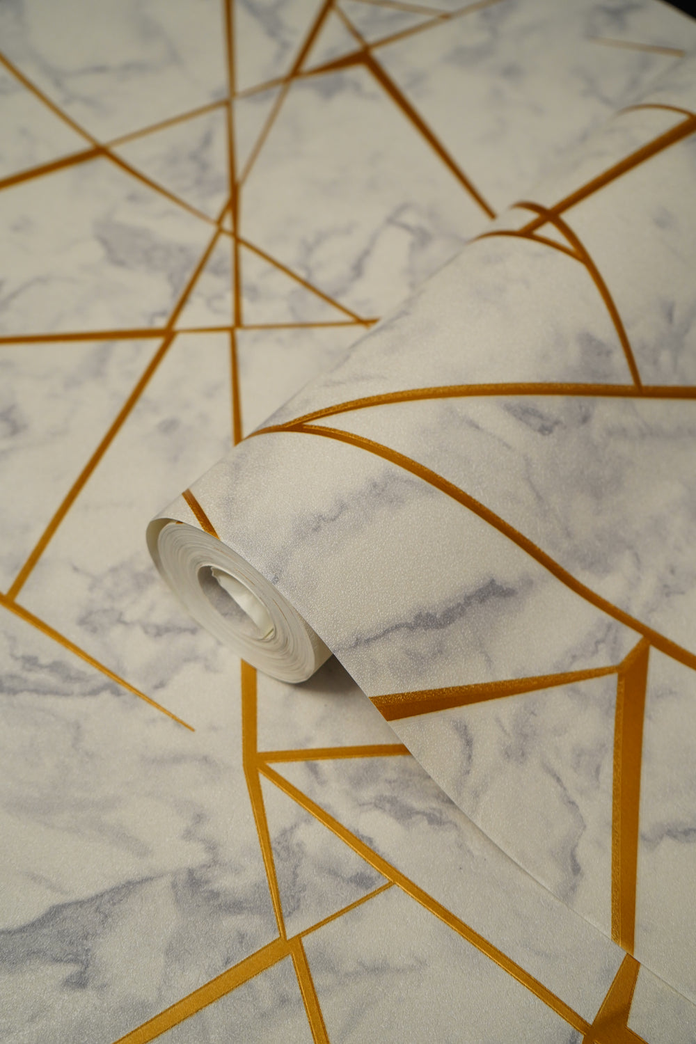 Off White Marble Design with Golden Stripes Not Self Adhesive 53 Cm X 1000 Cm for PVC Vinyl Coated for  Wall Bedroom Living Room Latest Stylish for Home Decoration (Off White , Golden , 57 Sqft Roll) (NW-42)