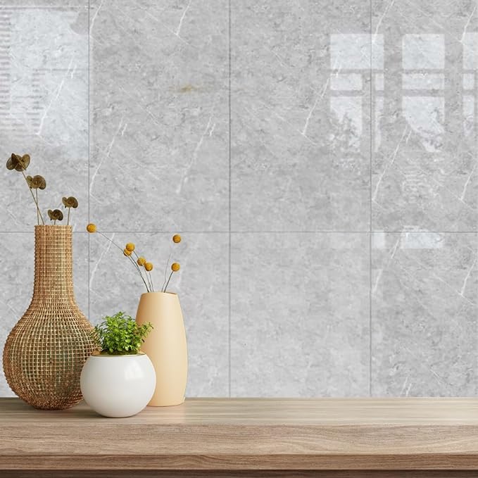 Grey & White UV Coated Marble Sheet, Self Adhesive And Washable Wall Stickers For Wall Decoration ( Set Of 10 )(MS-07)