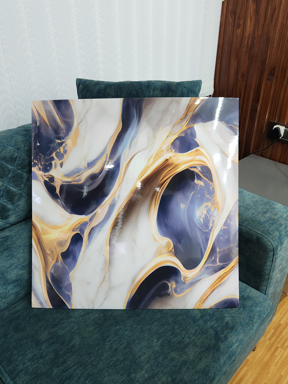 UV Coated Real Marble Tile Designed wall Stickers, Self Adhesive And Washable Wall Stickers For Wall Decoration (60 CM x 60 CM) ( Set Of 05 )(MS-27)