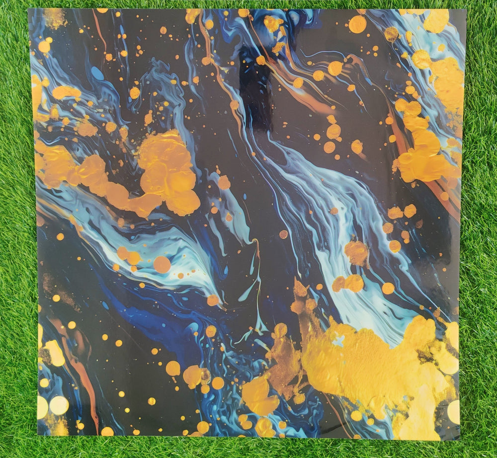 Black-Blue UV Coated Real Marble Tile Designed wall Stickers, Self Adhesive And Washable Wall Stickers For Wall Decoration (60 CM x 60 CM) ( Set Of 05 )(MS-49)