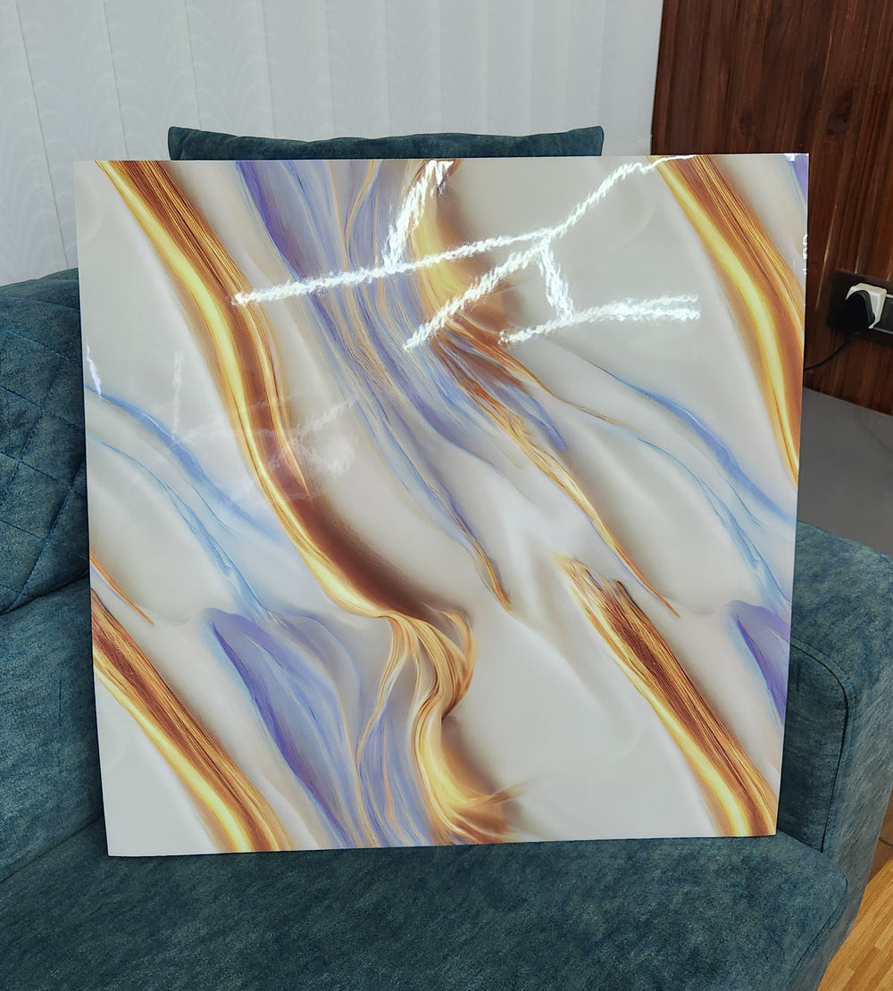 Sky blue & Golden UV Coated Real Marble Tile Designed wall Stickers, Self Adhesive And Washable Wall Stickers For Wall Decoration (60 CM x 60 CM) ( Set Of 05)(MS-33)